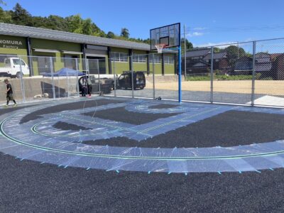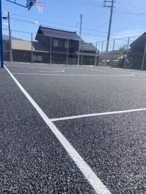 今日は与謝野町にてちょっと珍しバスケットコートのライン引き作業です